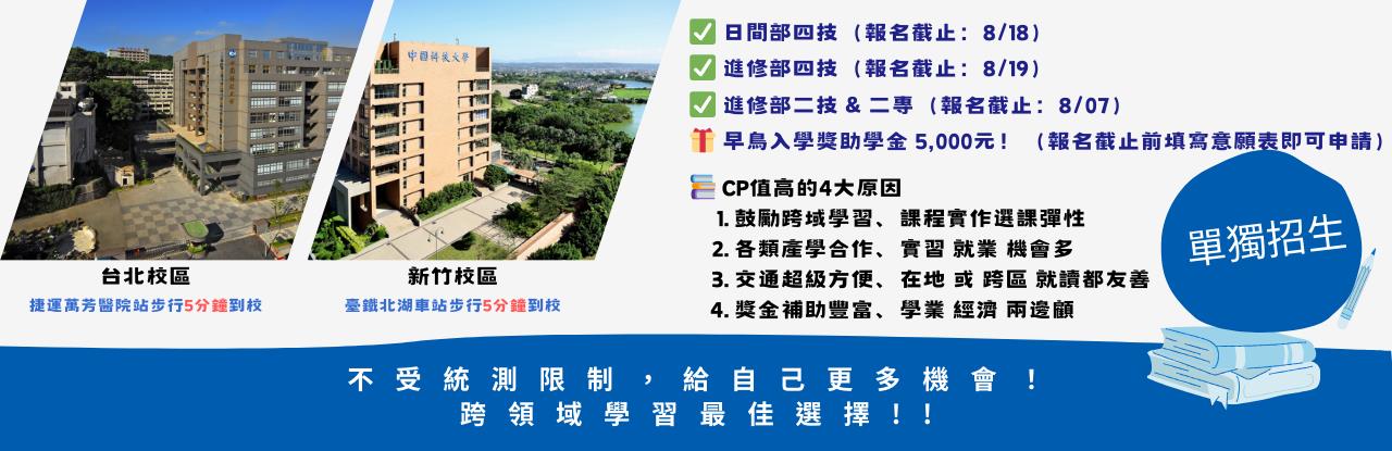 中國科技大學創立於民國五十四年,前身為「中國市政專校」、七十二年配合國家發展,更名為「中國工商專科學校」、八十九年改制為「中國技術學院」,九十四年八月正式改名為「中國科技大學」。