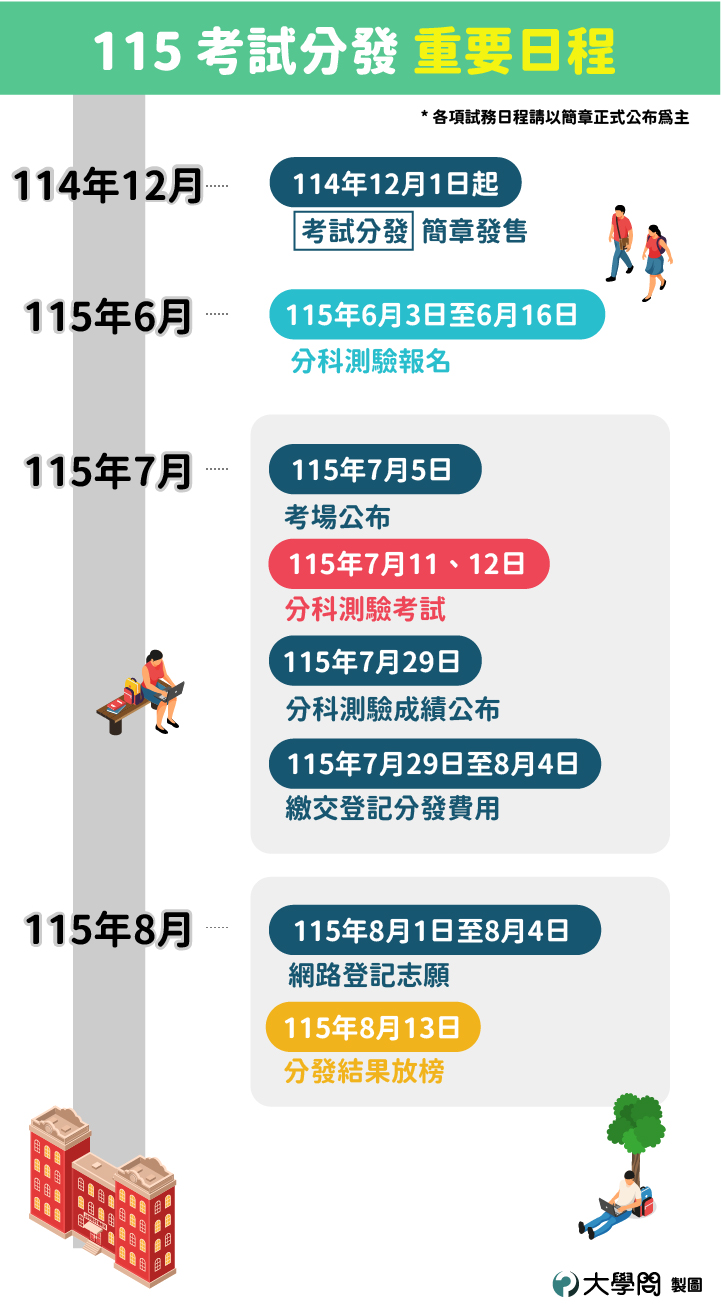 此外,部分校系(如語文或醫學相關科系)也會將「英語聽力測驗」列為檢定項目,因此務必詳讀簡章,確認有無採計「英聽」作為檢定門檻。「考試分發」的簡章在每年的11月提供下載,因此想以考試分發進入理想校系的學生,一定要及早注意該校系是否採計英聽以及學測哪些科目的成績。